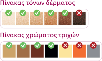 Παρακαλούμε όπως συμβουλευτείτε το πινακάκι καταλληλόλητας χρήσης Lumea που βρίσκεται δεξιά.