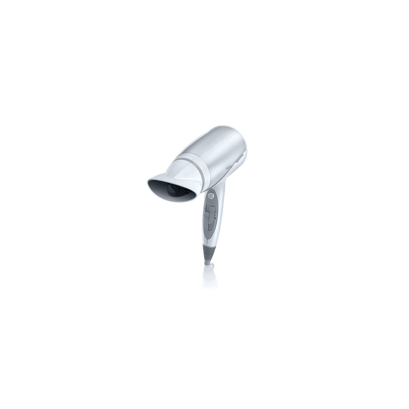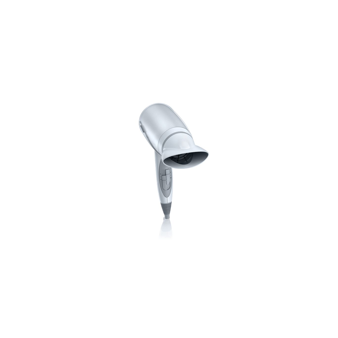 I was disappointed with the look of this hairdyer, the picture suggests it is grey but in fact it is brilliant white (plastic) and looks quite cheap. That said, it works ok and isn't too noisy or heavy. It was quite expensive and if I had purchased it in a shop (rather than online) I would have returned it before trying, based on looks alone.
