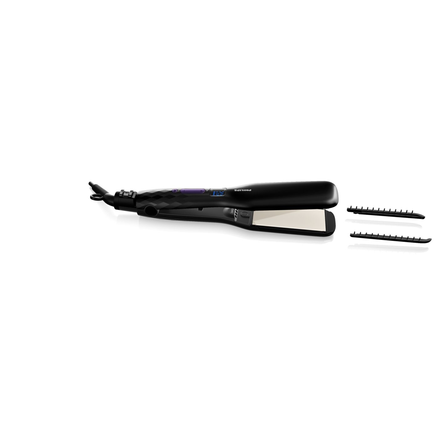 Ορισμένες φορές, μπορεί το ίσιωμα πυκνών ή μακριών μαλλιών να είναι δύσκολο και χρονοβόρο, καθώς οι πλάκες είναι συνήθως πολύ στενές για να κρατήσουν τα μαλλιά. Έτσι, ο όγκος των μαλλιών απαιτεί ίσιωμα αρκετές φορές για να επιτευχθεί το επιθυμητό αποτέλεσμα. Αυτές οι εξαιρετικά μεγάλες πλάκες ισιώματος έχουν σχεδιαστεί ειδικά για πυκνά ή μακριά μαλλιά. Με μεγαλύτερο πλάτος, που παρέχει 40% μεγαλύτερη επιφάνεια ισιώματος, οι πλάκες μπορούν να ισιώσουν περισσότερα μαλλιά με μία κίνηση, περιορίζοντας έτσι τον απαιτούμενο χρόνο.