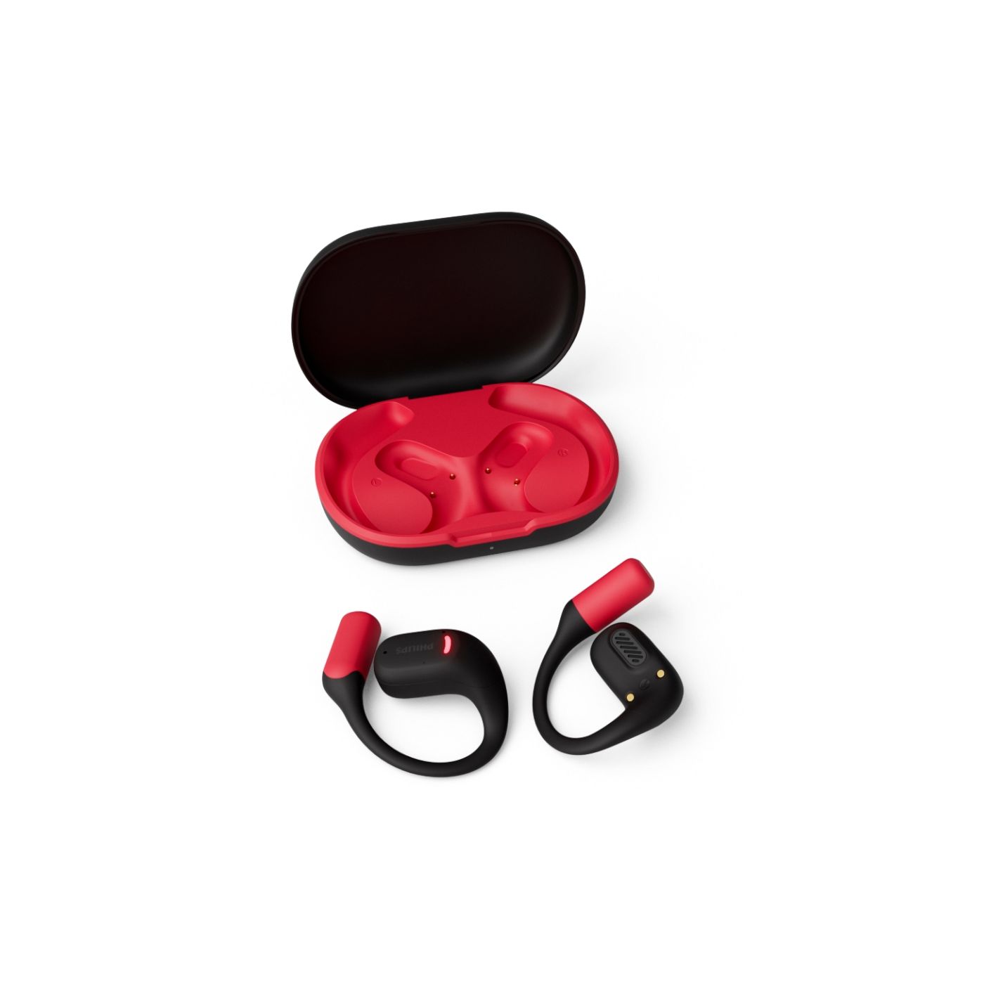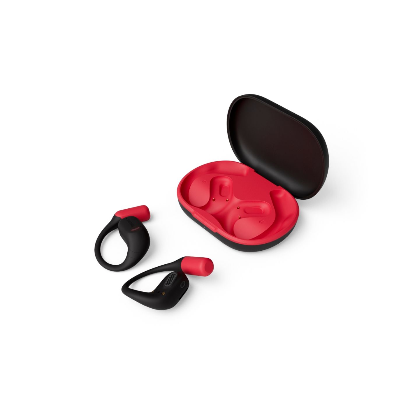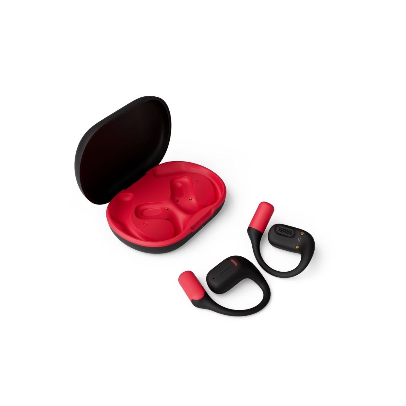 Χάρη στη σχεδίαση ανοικτού τύπου αυτών των ακουστικών, δεν χρειάζεται να χρησιμοποιείτε άκρα ακουστικού διαφορετικού μεγέθους. Αντιθέτως, τα άνετα κλιπ αυτιού αγκαλιάζουν τα αυτιά, ενώ το ελαστικό άγκιστρο στο άκρο κάθε κλιπ στερεώνεται απαλά κάτω από το πίσω μέρος του αυτιού για μεγαλύτερη ασφάλεια και απροβλημάτιστη εφαρμογή.